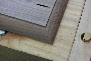 It begins with a 1/8" rabbet cut along the front and side edges of the lid. Traditionally cut with a rabbet plane, a router will perform the task quite aptly.